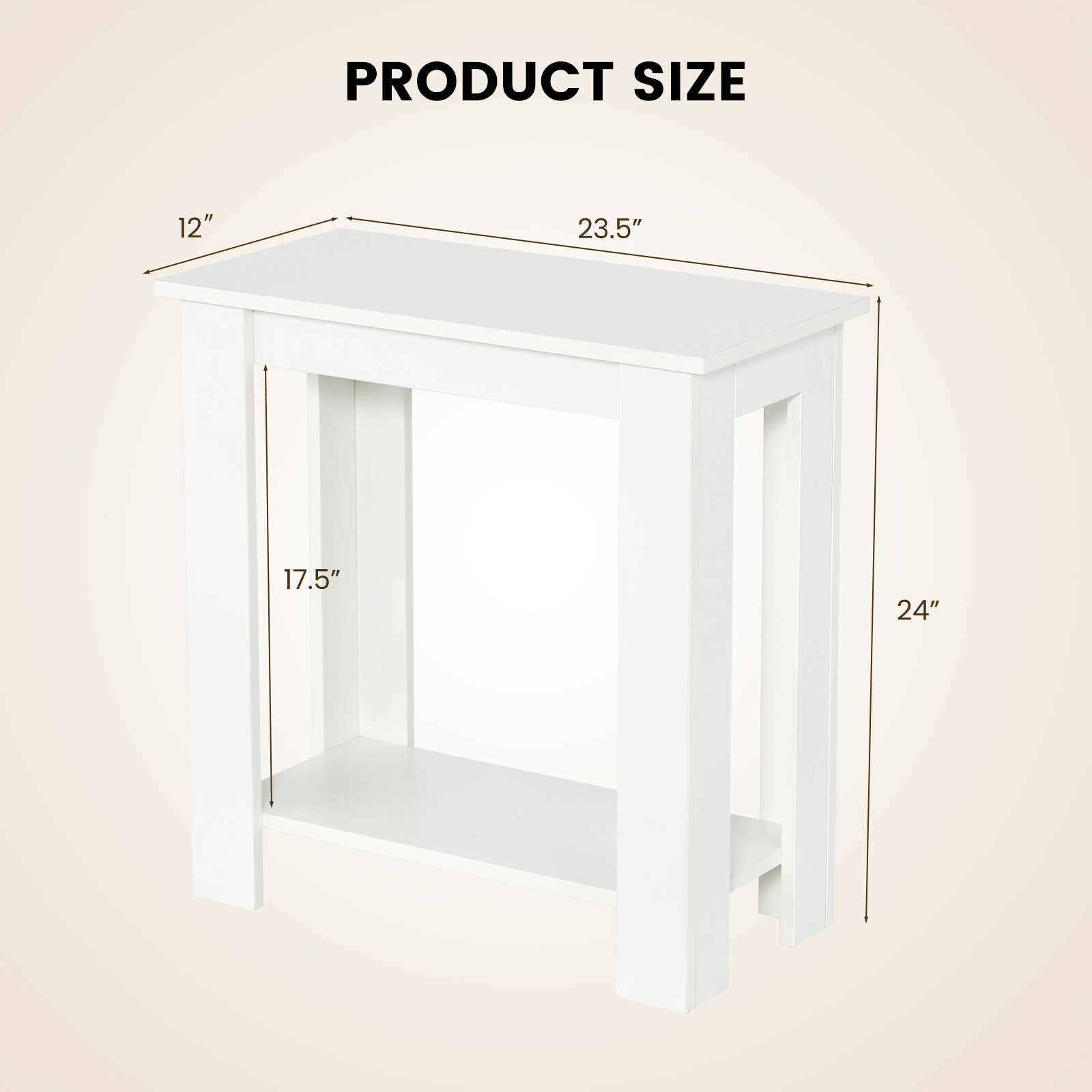 Upgrade your space with this elegantly designed compact end table, perfect for small bedrooms, living rooms, dorms, or entryways. Featuring a clean white finish and timeless rectangular shape, it combines classic charm with modern functionality. With a spacious tabletop and open lower shelf, this side table offers smart storage without sacrificing style.